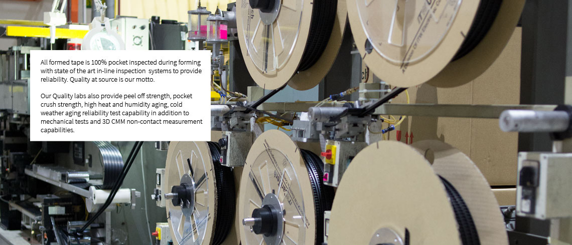 Match Metal Technology (MMT) is our unique manufacturing capabilities, which combine proprietary automated high speed pocket embossing and hole punching equipment with precision embossing dies, deliver several advantages - such as consistent indexing hole pitch, low pocket dimension variation and uniform wall thickness.