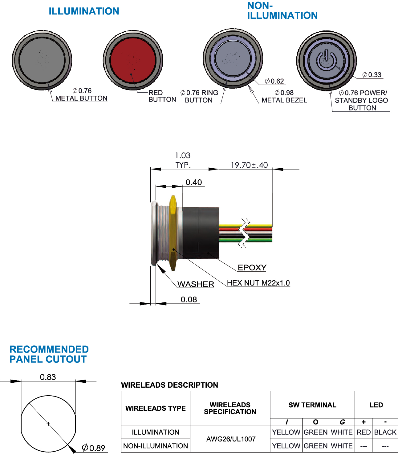 Comutatoare cu buton cu efect Hall de 22 mm| Producător de electronice pentru întrerupătoare industriale cu buton |ITW Lumex Switch